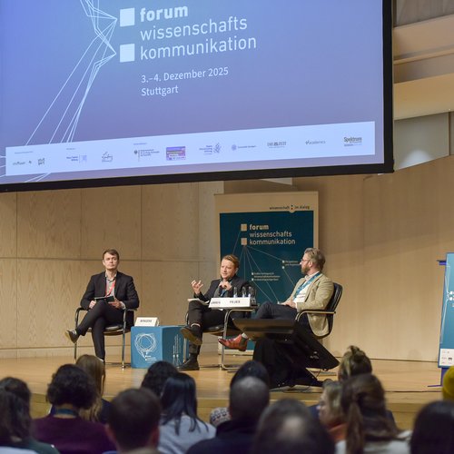 Über UnsAm 3. und 4. Dezember treffen sich rund 750 Teilnehmer*innen beim Forum Wissenschaftskommunikation 2025 in der Liederhalle Stuttgart, um über den Schwerpunkt „Algorithmen, Plattformen und KI: Wissenschaftskommunikation im digitalen Wandel“ zu diskutieren und sich über neuste Entwicklungen in der Wissenschaftskommunikation auszutauschen. Nach der Begrüßung durch WiD-Geschäftsführer Benedikt Fecher und Stadtdirektorin Ines Aufrecht begann die Tagung mit der Keynote „Wissenschaft im Geschwindigkeitsrausch“ von Katharina Zweig.