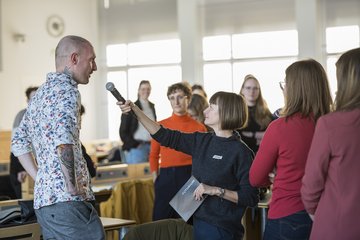 Der Social-Media-Workshop fokussierte auf praktische Kniffe: schnell ins Thema einsteigen, starke Hooks setzen und die ersten Sekunden als entscheidend für Aufmerksamkeit und Algorithmus verstehen. Wichtig seien außerdem Empathie und der konsequente Blick auf den Nutzen fürs Publikum.